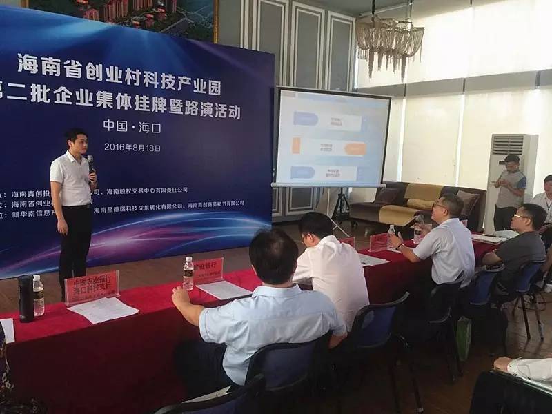 8月23日上午,海南股權(quán)交易中心聯(lián)合海南青創(chuàng)投資管理有限公司在海南省創(chuàng)業(yè)村科技產(chǎn)業(yè)園舉辦第二批企業(yè)集體掛牌儀式暨路演活動。這也是繼創(chuàng)業(yè)村科技產(chǎn)業(yè)園服務中心正式運營以來的首場重要活動。