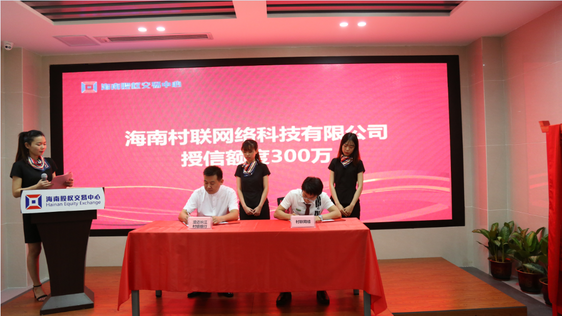 9月7日上午,海南股權(quán)交易中心企業(yè)集體掛牌暨銀行授信簽約儀式,在海南生態(tài)軟件園B13號一樓隆重舉辦。海南森谷咖啡有限公司、海口匯美潔環(huán)保科技有限公司、湖南天惠油茶開發(fā)有限公司、儋州綠福鮮農(nóng)業(yè)發(fā)展有限公司和海南村聯(lián)網(wǎng)絡(luò)科技有限公司5家優(yōu)秀企業(yè)參加了集體掛牌暨銀行授信簽約儀式,5家企業(yè)現(xiàn)場獲得了澄邁長江村鎮(zhèn)銀行1500萬元的授信。