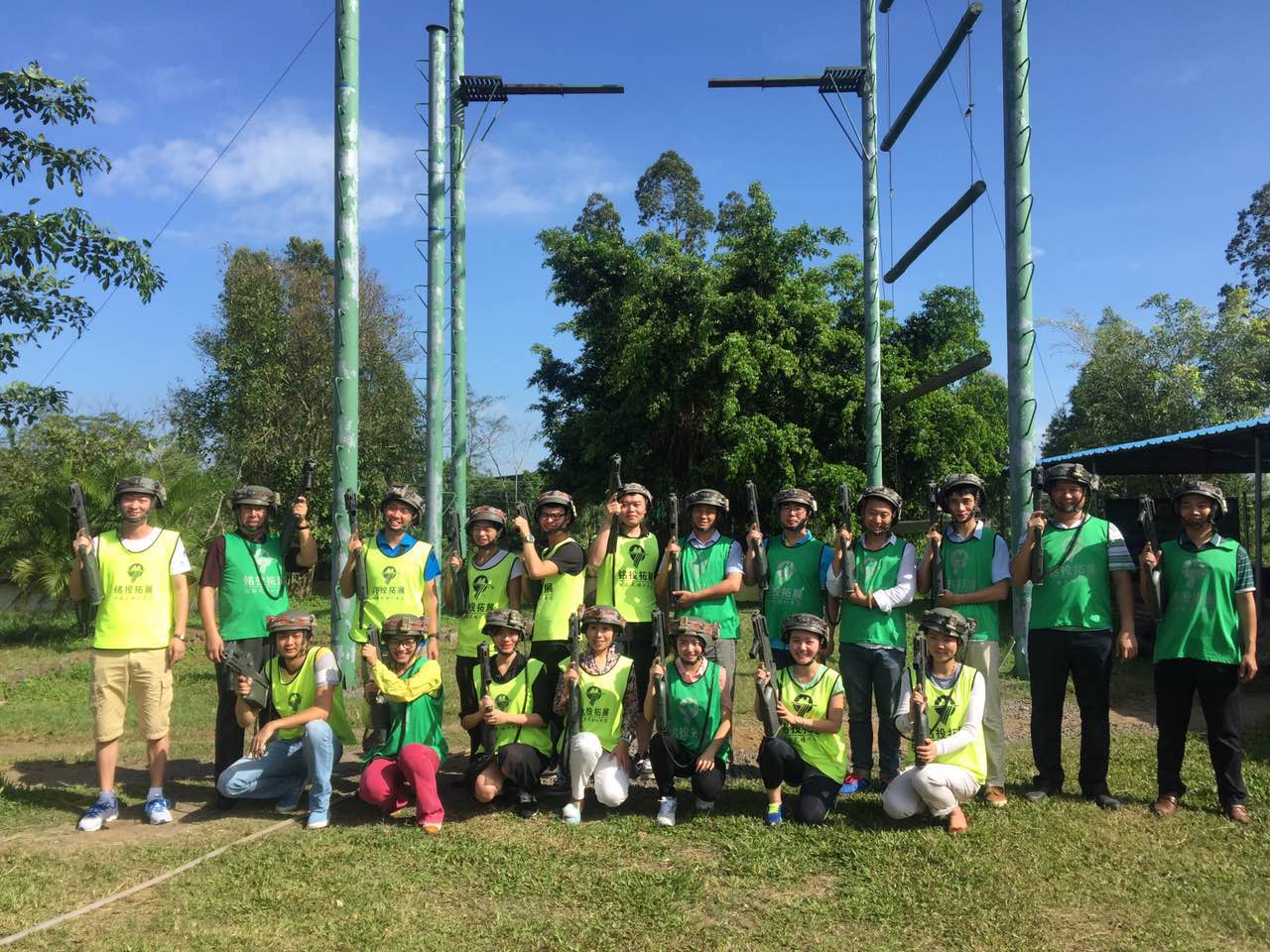 雖已立冬,但海南的天氣依舊炎熱,參與活動(dòng)的股交中心各掛牌企業(yè)的高管們,一大早就輕裝上陣的來到了銘投山莊。在東道主銘投山莊負(fù)責(zé)人的組織下,大家以真人CS鐳戰(zhàn)開啟了今天的活動(dòng)。在精妙的分工和戰(zhàn)術(shù)的配合下,高管們開始了一場(chǎng)兒時(shí)就無比向往的,長期根植于游戲機(jī)和漫畫中的,痛痛快快地沖鋒陷陣、英勇“殺敵”的熱身游戲。