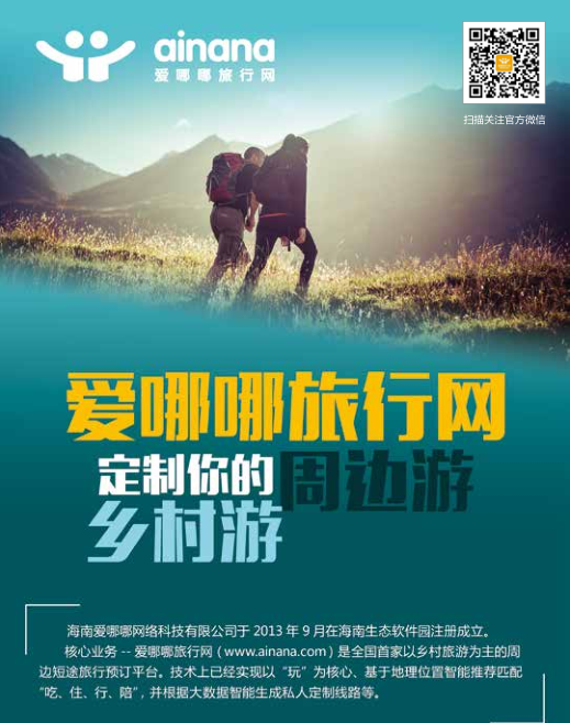 的鄉(xiāng)村游目的地是旅游突破現(xiàn)狀的一種探索。愛(ài)哪哪有信心成為海南本土孕育出的一個(gè)優(yōu)秀的互聯(lián)網(wǎng)公司,這是愛(ài)哪哪