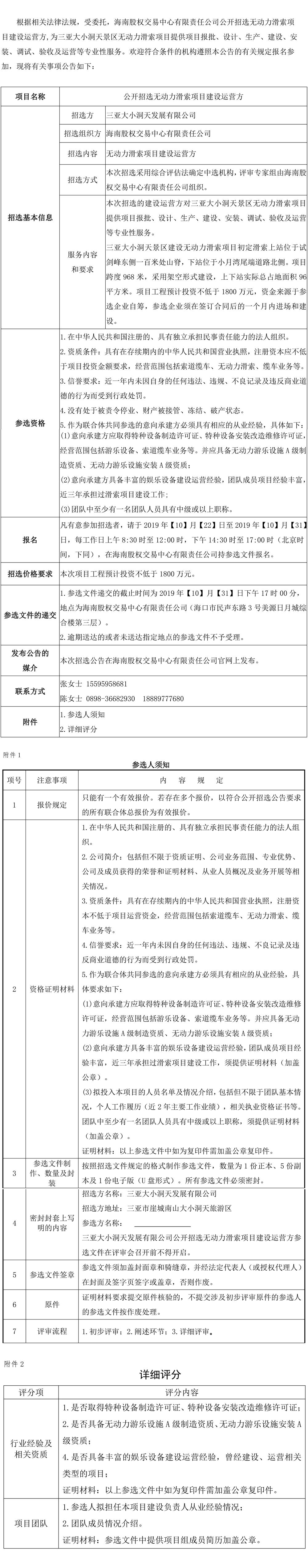 三亞大小洞天發(fā)展有限公司公開招選無動力滑索項(xiàng)目建設(shè)運(yùn)營方