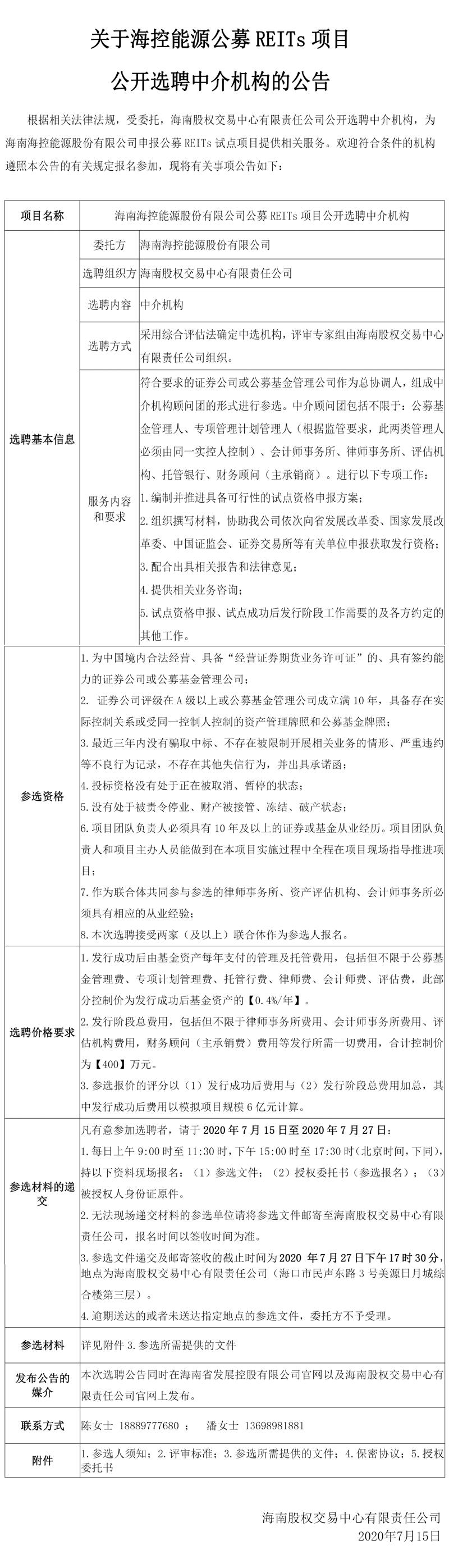 關(guān)于??啬茉垂糝EITs項(xiàng)目公開(kāi)選聘中介機(jī)構(gòu)的公告