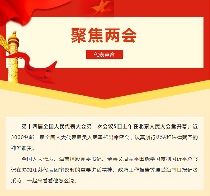 全國人大代表、海南控股黨委書記、董事長周軍平圍繞學(xué)習(xí)貫徹習(xí)近平總書記在參加江蘇代表團(tuán)審議時的重要講話精神、政府工作報告等接受海南日報記者采訪,一起來看看他怎么說。