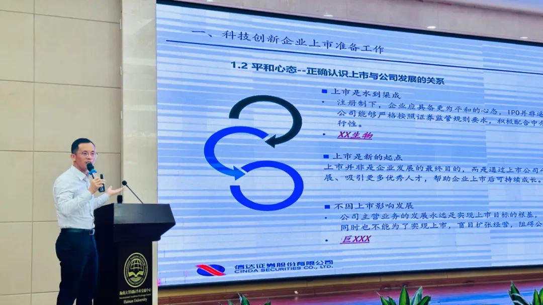 為幫助??谄髽I(yè)掌握最新政策形勢(shì),助力企業(yè)搶抓機(jī)遇、借助多層次資本市場(chǎng)實(shí)現(xiàn)高質(zhì)量發(fā)展,4月20日,由??谑锌乒ば啪种鬓k、海南股權(quán)交易中心承辦、信達(dá)證券協(xié)辦的“多層次資本市場(chǎng)和全面注冊(cè)制改革”專題培訓(xùn)活動(dòng)在海南大學(xué)國(guó)際學(xué)術(shù)交流中心舉辦,活動(dòng)得到了海南省金融監(jiān)管局、海南證監(jiān)局、深圳證券交易所的支持,海口市中小企業(yè)代表近70人參加本次培訓(xùn)活動(dòng)。
