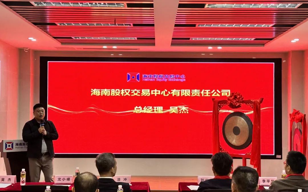 2023年12月28日下午,海南股交在老城舉辦交易板企業(yè)掛牌鳴鑼儀式,海南金控黨總支副書記、副總經(jīng)理潘沖,海南省商業(yè)總會(huì)會(huì)長劉宏和,海南省貿(mào)促會(huì)國際聯(lián)絡(luò)部部長李平功、四級(jí)調(diào)研員蔡國軍,海南股交總經(jīng)理吳杰及相關(guān)金融機(jī)構(gòu)、企業(yè)代表近60人參加本次活動(dòng)。四家優(yōu)質(zhì)企業(yè)海口駿文湖生態(tài)農(nóng)業(yè)開發(fā)股份有限公司、中視智行科技(海南)股份有限公司、海南逸途文旅發(fā)展股份有限公司、嘉瑞互聯(lián)網(wǎng)科技(海南)股份有限公司分別上臺(tái)鳴鑼,成功掛牌海南股交交易板。