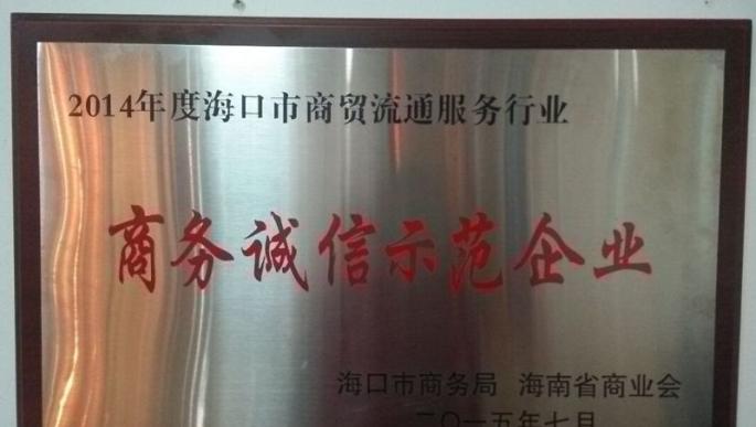 十、2015年7月被??谑猩虅?wù)局、海南省商業(yè)會評為2014年度??谑猩藤Q(mào)流通服務(wù)行業(yè)商務(wù)誠信示范企業(yè)。